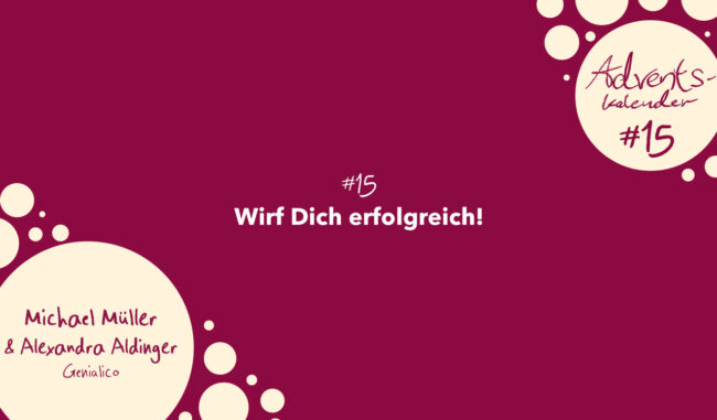 Genialico Adventskalender #15: Wirf Dich erfolgreich!   Sehr häufig nehmen wir unsere Erfolge gar nicht mehr wahr oder nur noch die von uns als wirklich groß eingeschätzten Erfolge. Das ist sehr schade, denn Erfolge sind letztendlich erreichte Ziele und wenn wir diese nicht mehr wahrnehmen, haben wir auch nie das Gefühl, ein Ziel erreicht zu haben. Mit der…