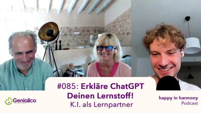#084: Erkläre ChatGPT Deinen Lernstoff! – K.I. als Lernpartner Künstliche Intelligenz (K.I. / A.I.) und insbesondere ChatGPT sind in aller Munde – wir von Genialico setzen uns seit einiger intensiv mit dem Einsatz von KI Im Lernen, Lerncoaching und Lernprozess auseinander. 🧠 Was steckt dahinter, was gilt es für den Einsatz im Lernprozess zu beachten…