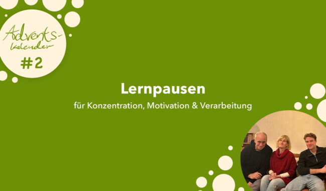 Genialico Adventskalender 2025 – Türchen 2: Lernpausen Keiner kann sich unendlich lange auf eine Aufgabe konzentrieren. Nach einiger Zeit wird es oft zäh, unangenehm, anstrengend, wir werden müde und es ist dabei auch überhaupt nicht förderlich für den Lernprozess. Durch Pausen erholen wir uns und können wieder konzentriert weitermachen. Außerdem transferiert unser Gehirn das Gelernte…